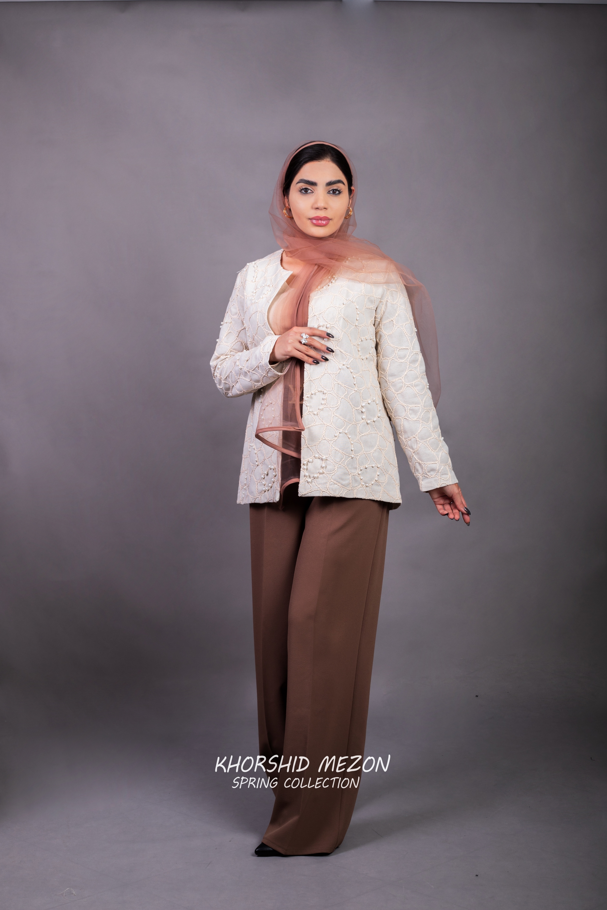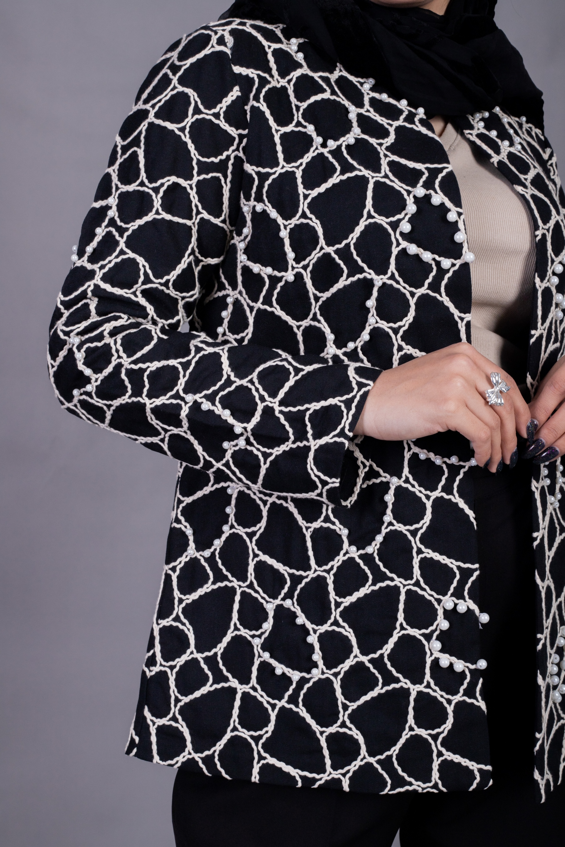 مانتو کتی خامه دوسزی و مروارید دوزی کار دست